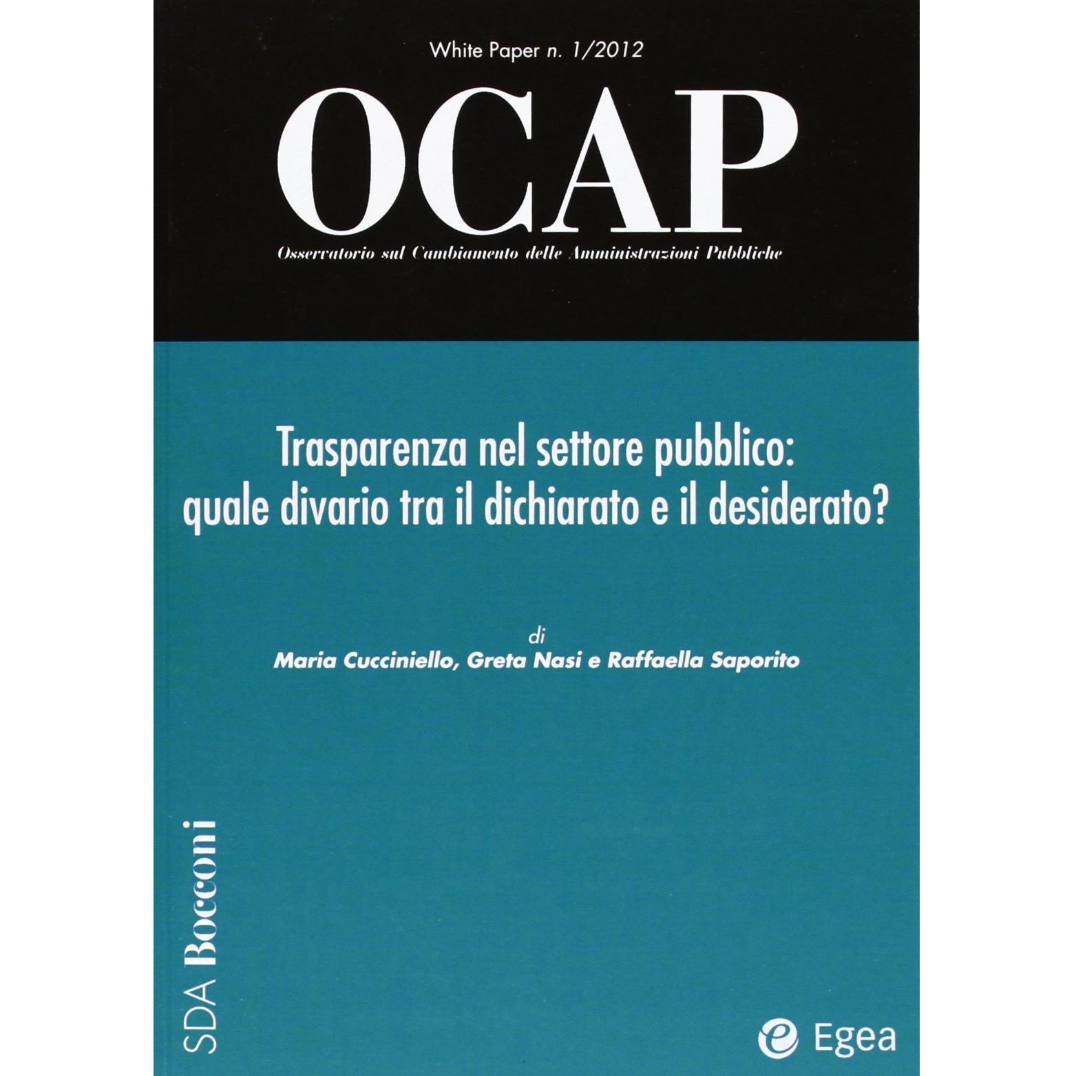 OCAP. Osservatorio sul cambiamento delle amministrazioni pubbliche. Trasparenza nel settore pubblico: quale divario tra il dichiarato e il desiderato (2012) (Vol. 1)