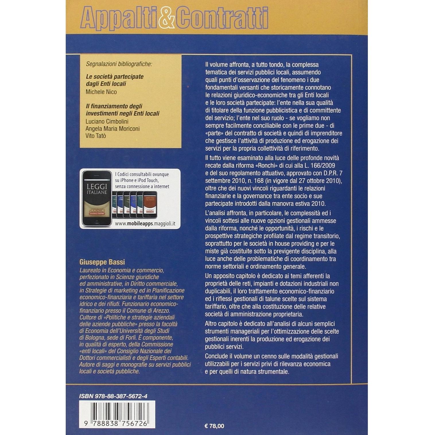 Servizi pubblici locali e società di gestione. Aspetti ordinamentali e opzioni strategiche nell'ottica della liberalizzazione Giuseppe Bassi
