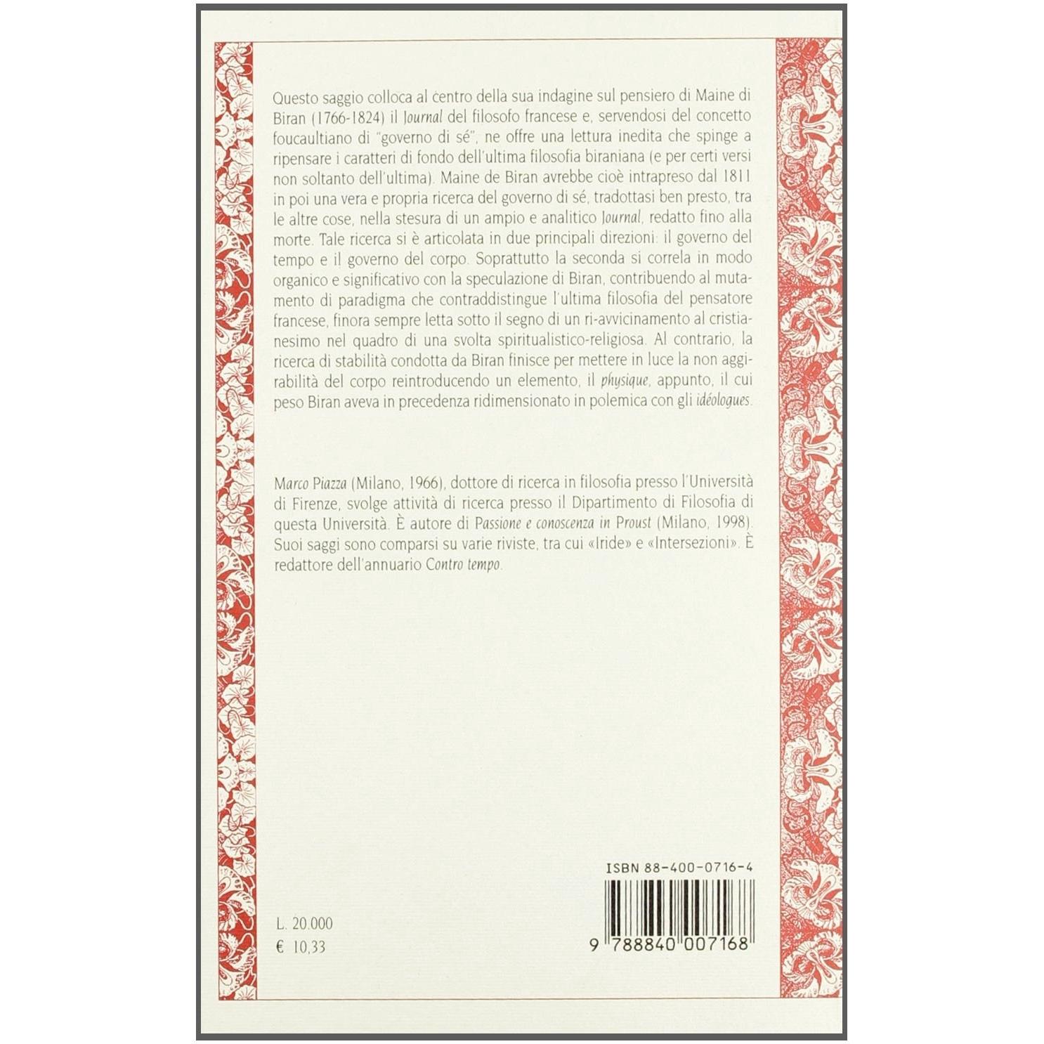 Il governo di sé. Tempo, corpo e scrittura in Maine de Biran