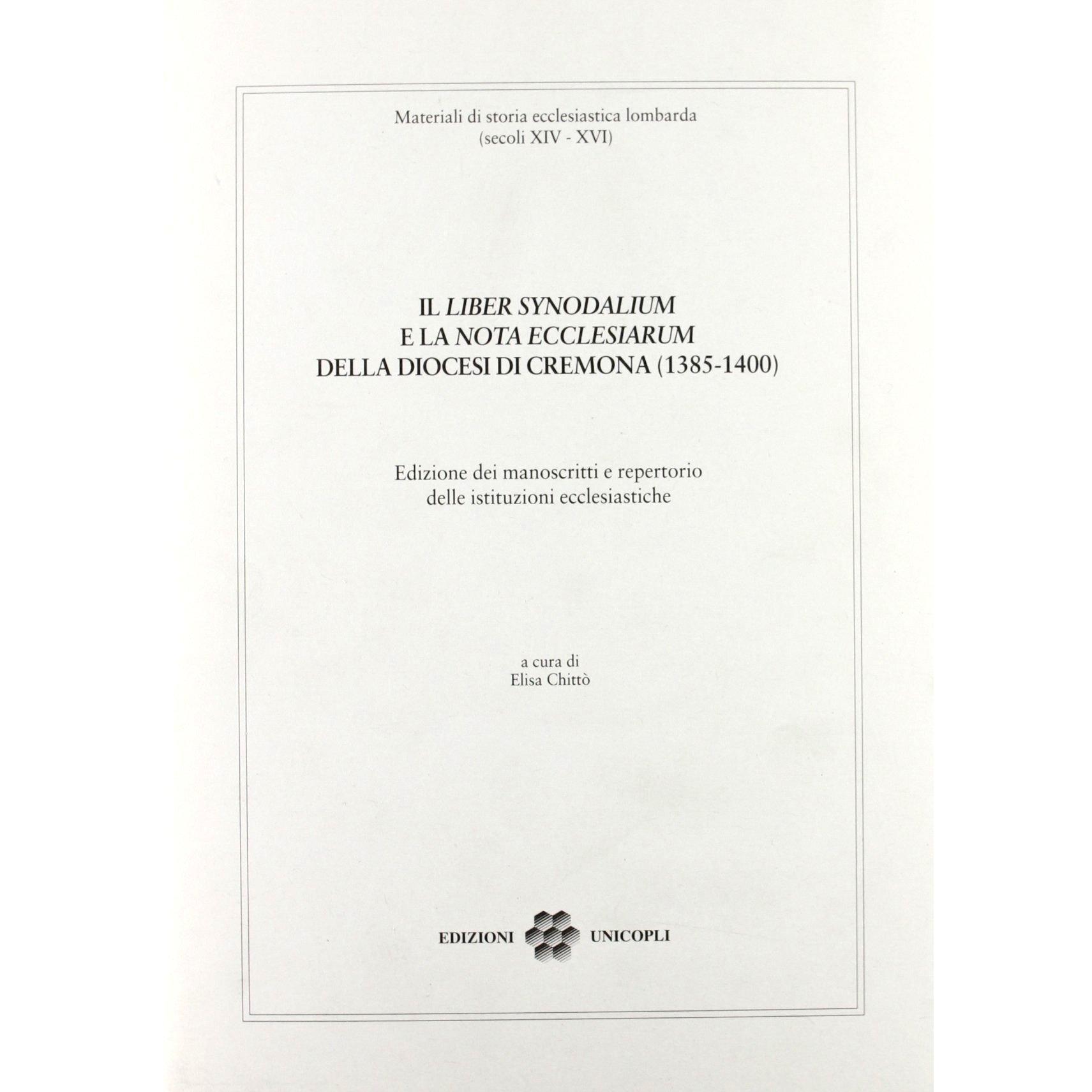 Il volume presenta una ricostruzione accurata dei manoscritti del «Liber Synodalium» e della «Nota Ecclesiarum» di Cremona tra il 1385 e il 1400, ...