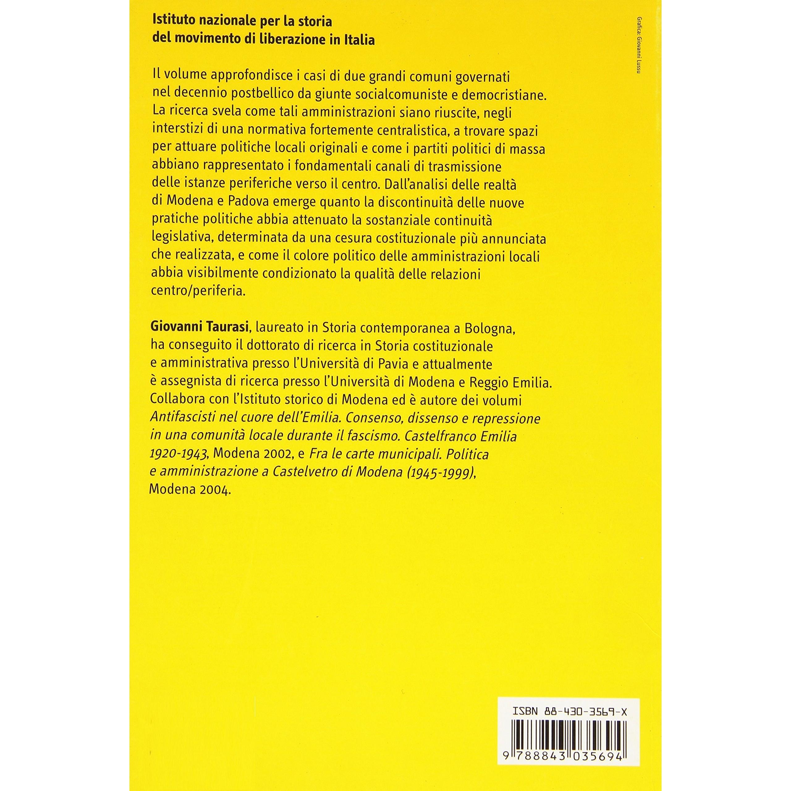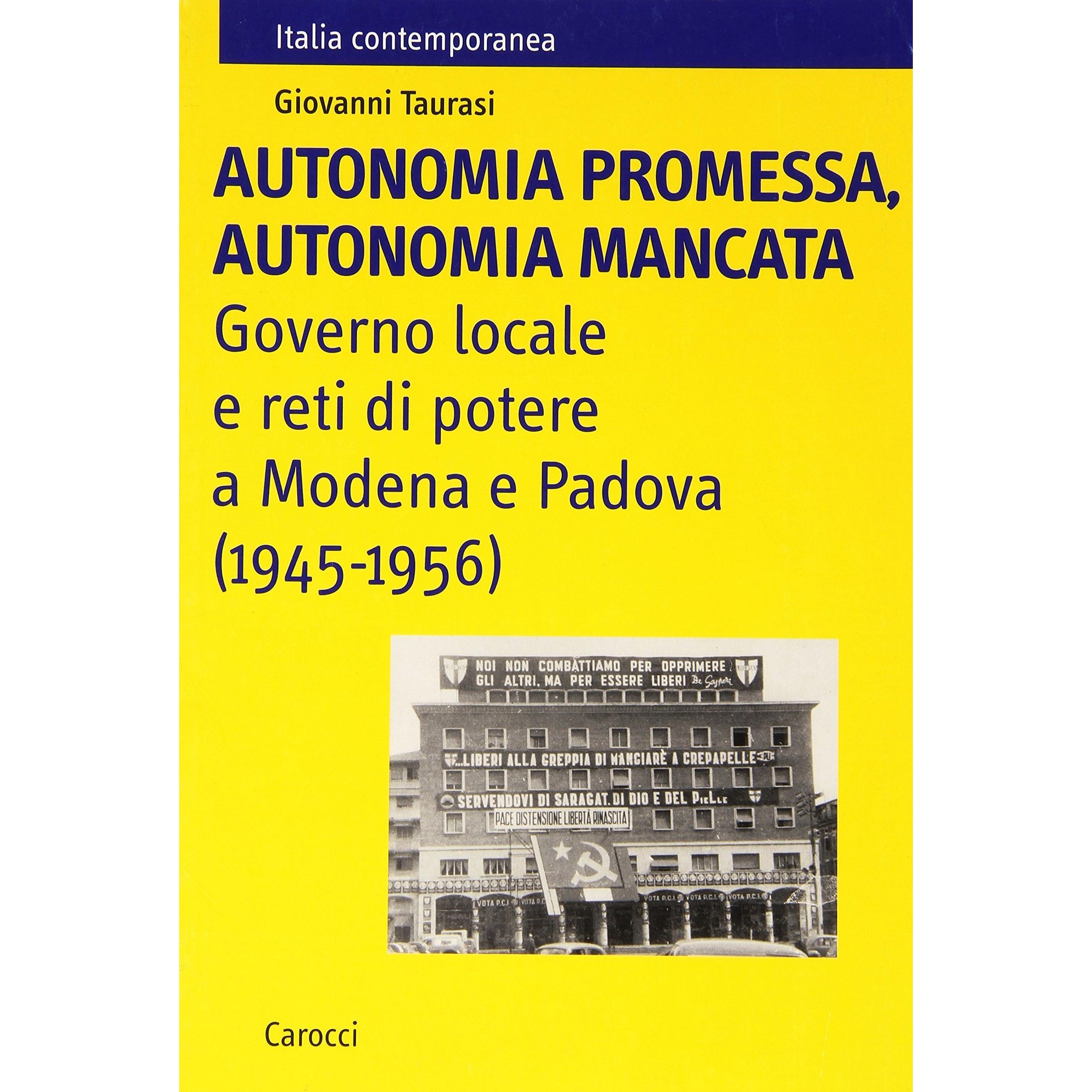 Autonomia promessa, autonomia mancata. Governo locale e reti di potere a Modena e Padova (1945-1956) Giovanni Taurasi
