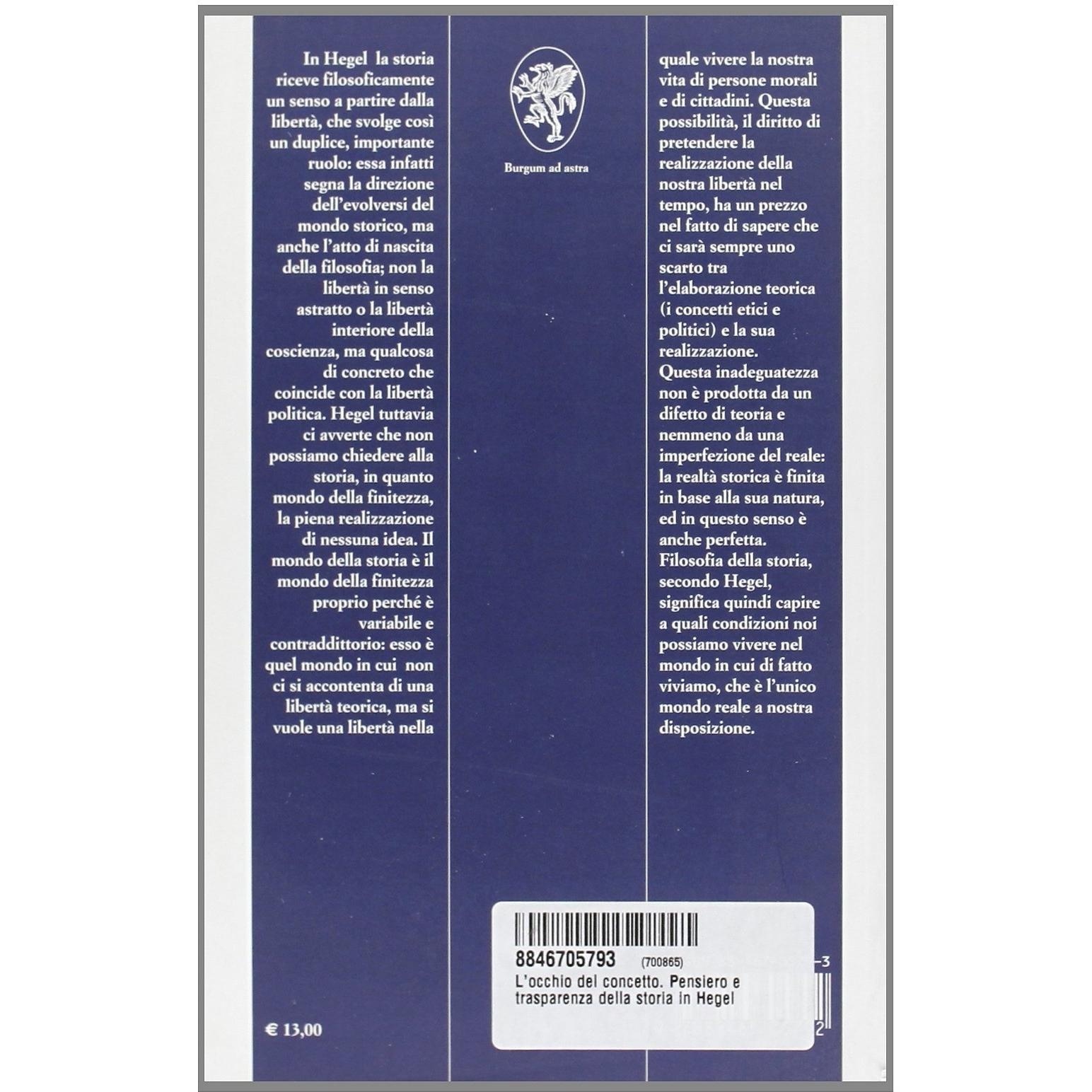 L' occhio del concetto. Pensiero e trasparenza della storia in Hegel Franco Biasutti