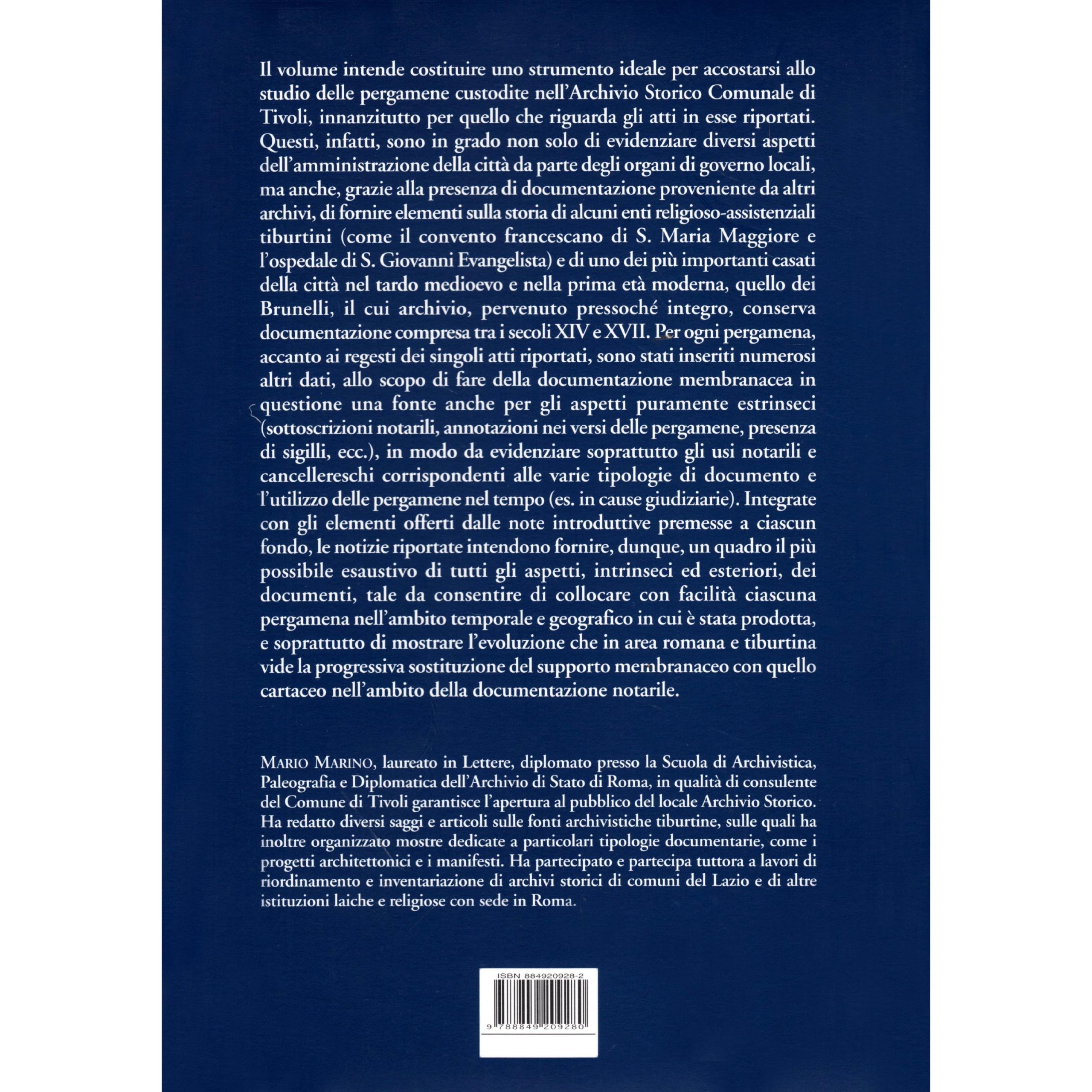 Le pergamene dell'archivio storico comunale di Tivoli (XIII secolo-1785) Mario Marino