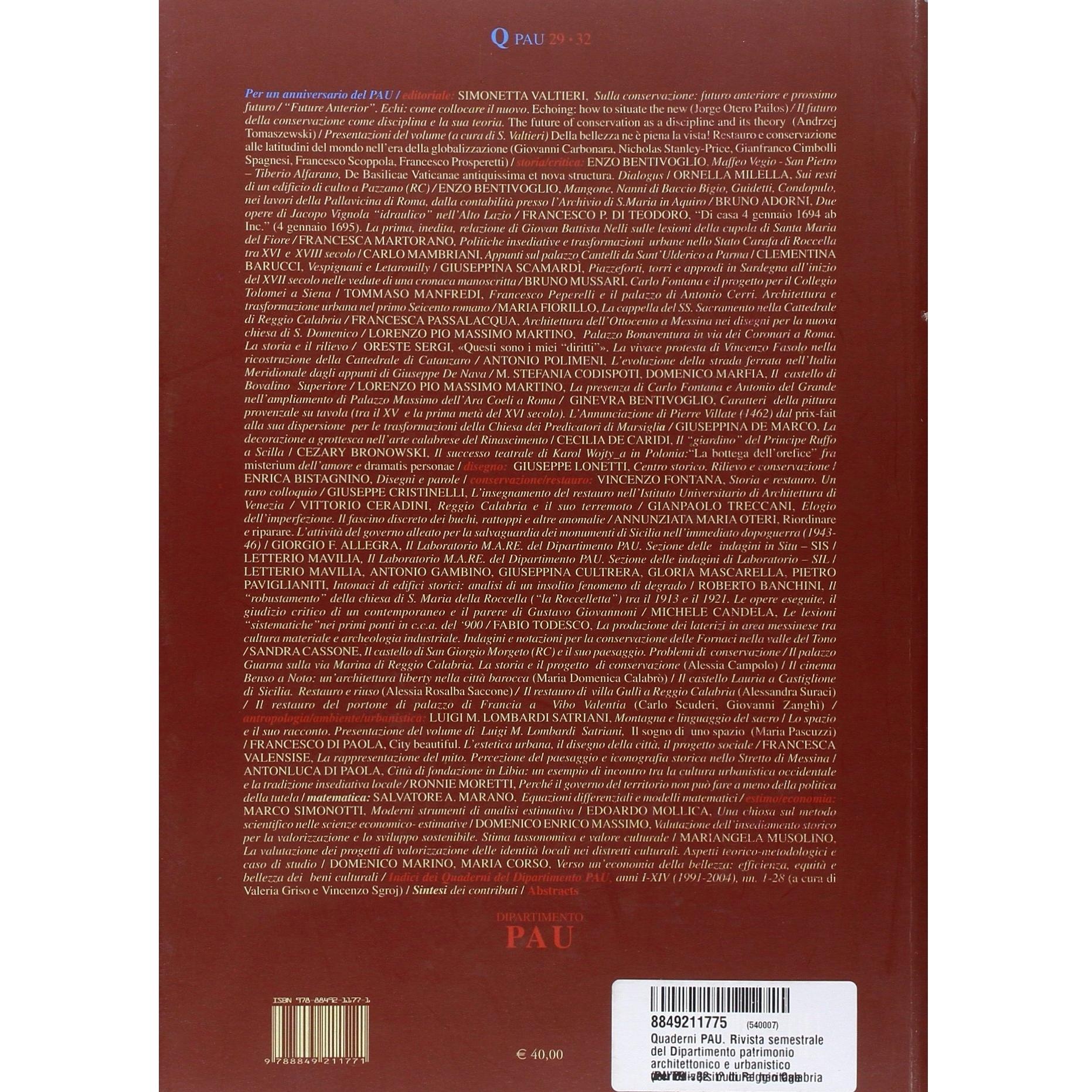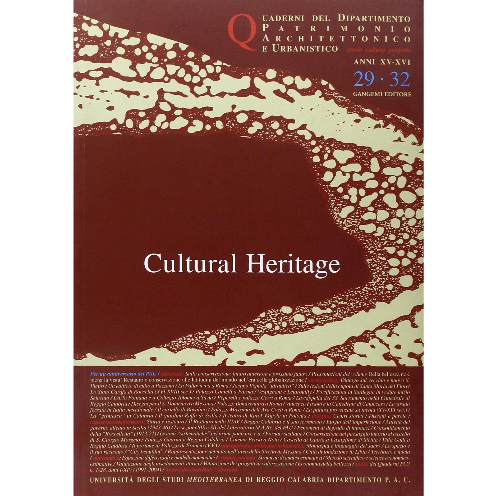 Quaderni PAU. Rivista semestrale del Dipartimento patrimonio architettonico e urbanistico dell'Università di Reggio Calabria vol. 29-32: cultural heritage