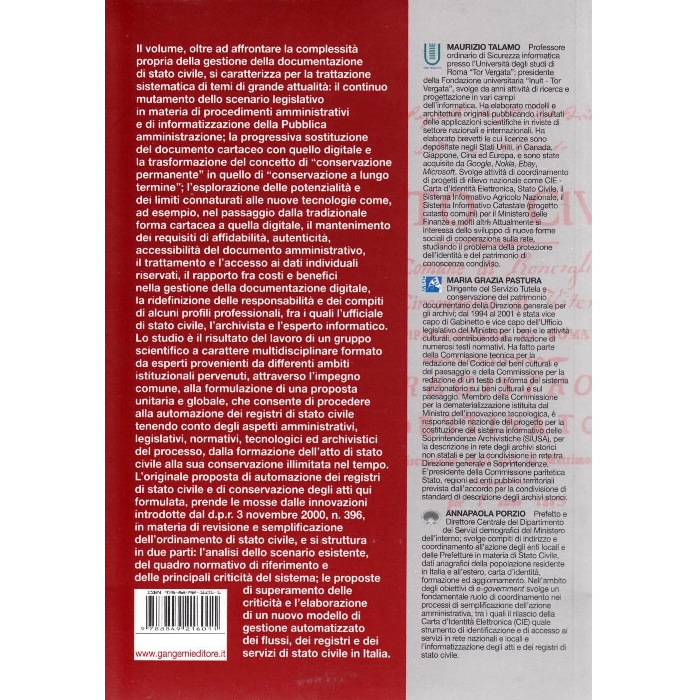 Conservazione a lungo termine e certificazione. Lo stato civile i... Maria Grazia Pastura