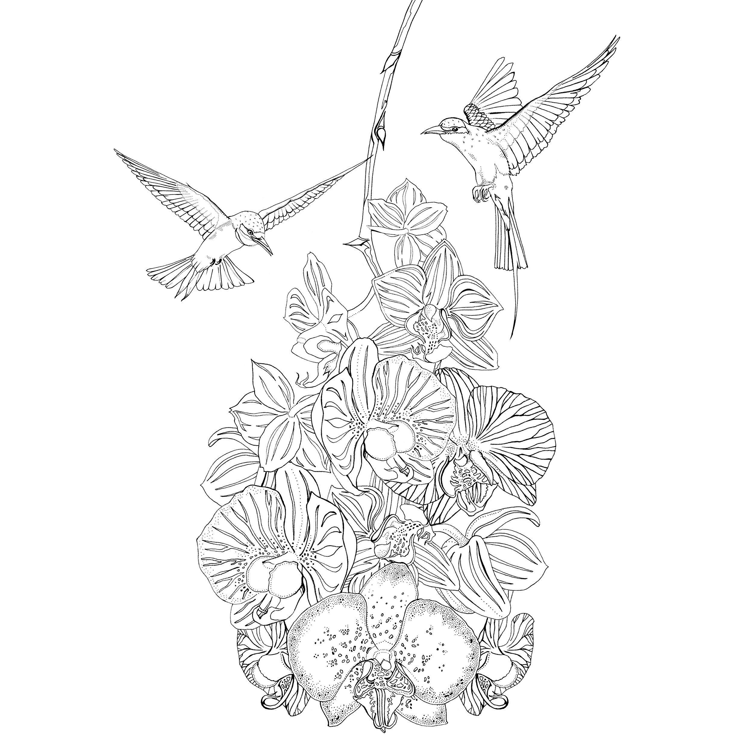 Uccelli. Black premium. Colouring book antistress