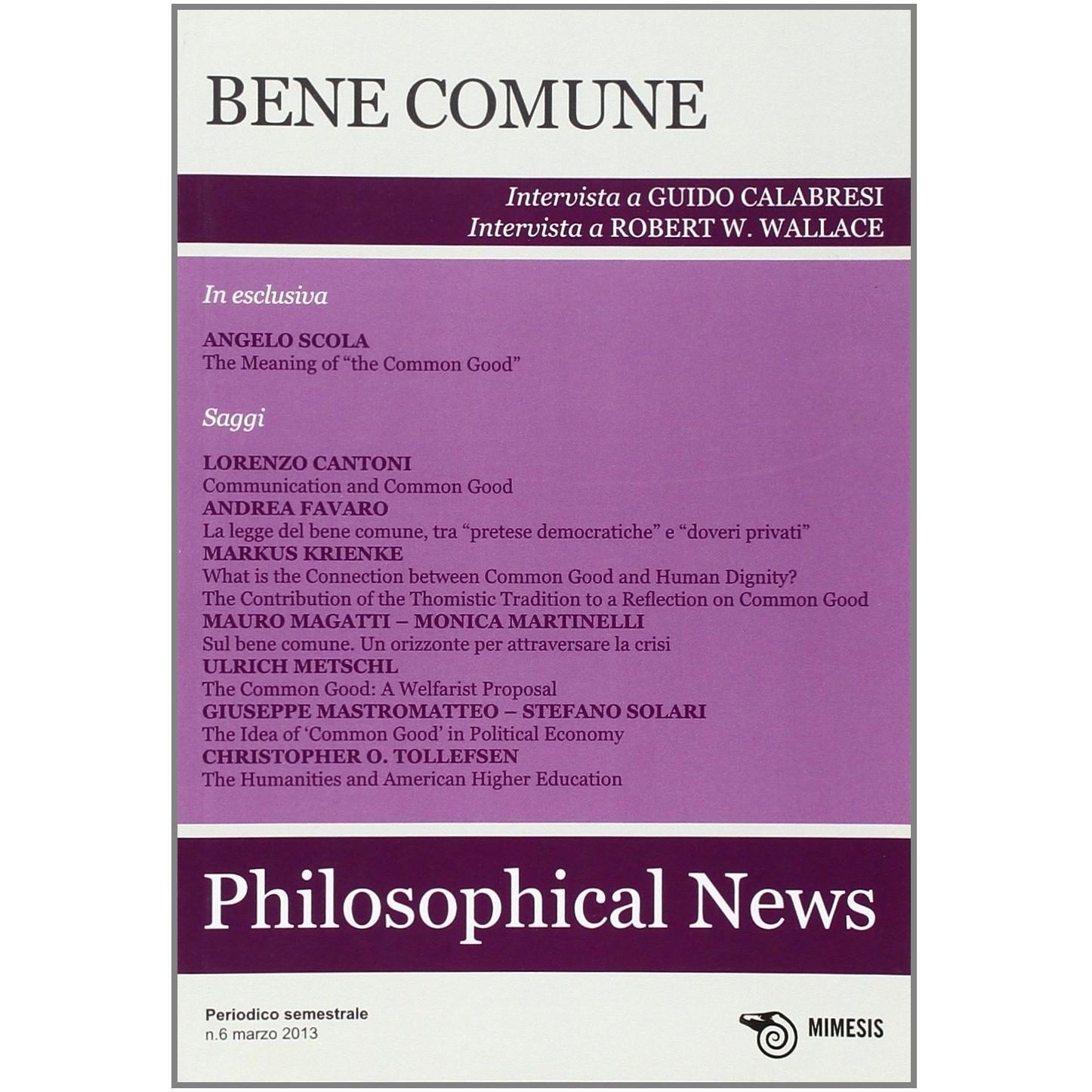 Philosophical news (2013). Vol. 6: Bene comune