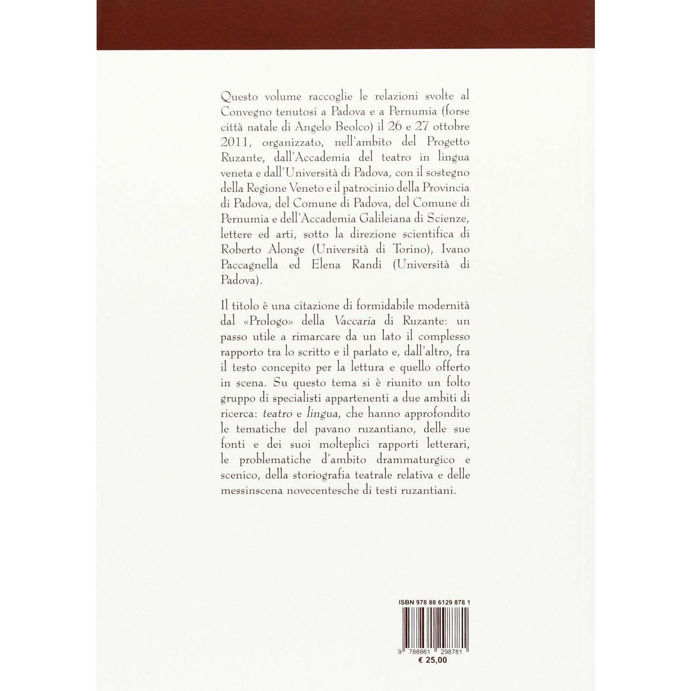 Molte cose stanno bene nella penna che ne la scena starebben male. Teatro e lingua in Ruzante