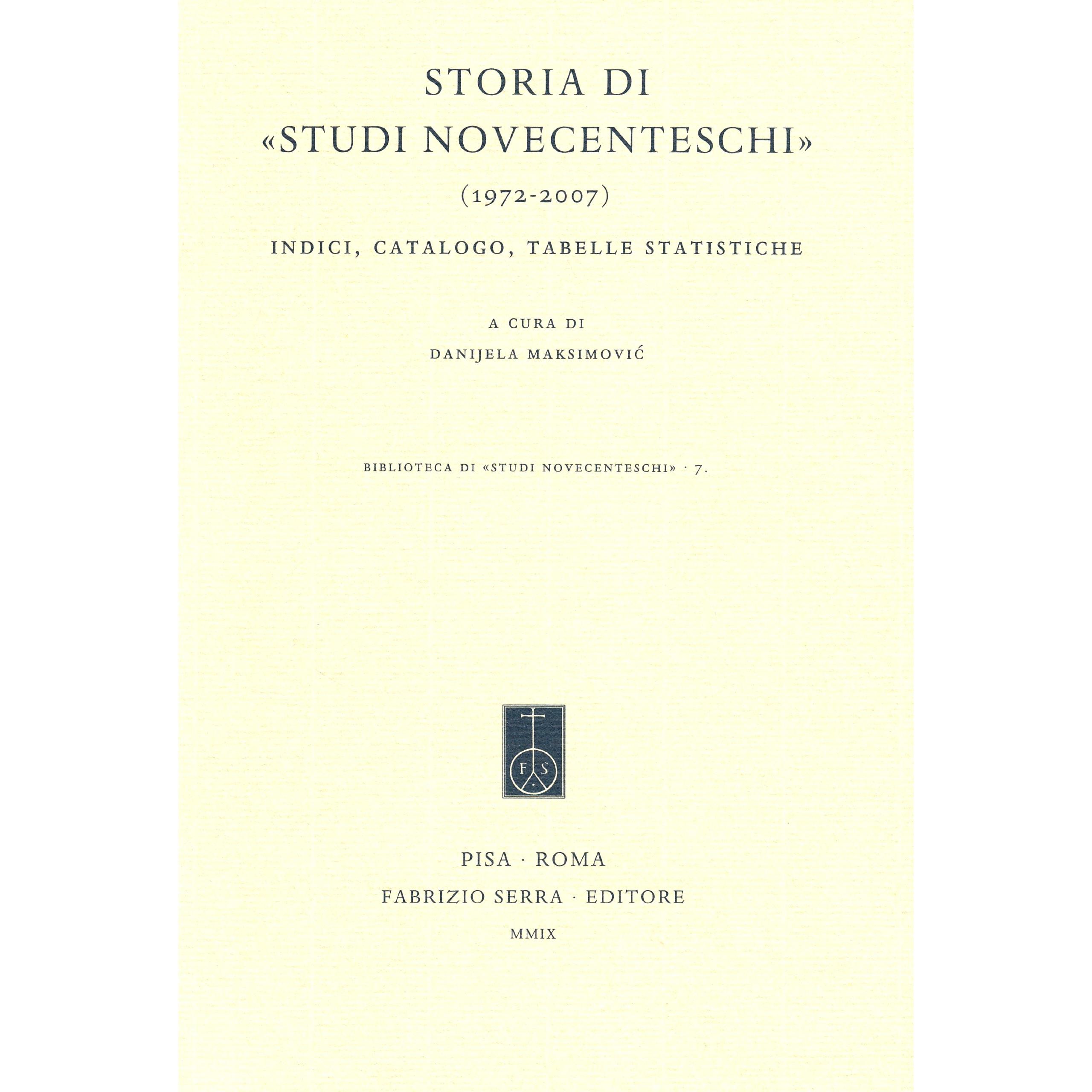 Storia di «Studi novecenteschi» (1972-2007). Indici, catalogo, tabelle statistiche