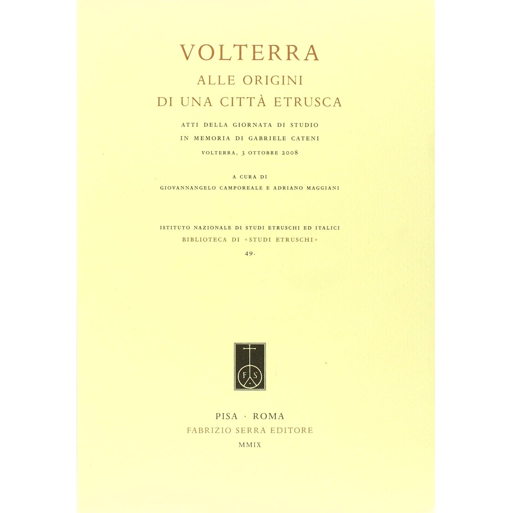 Volterra. Alle origini di una città etrusca. Atti della giornata di studio in memoria di Gabriele Cateni