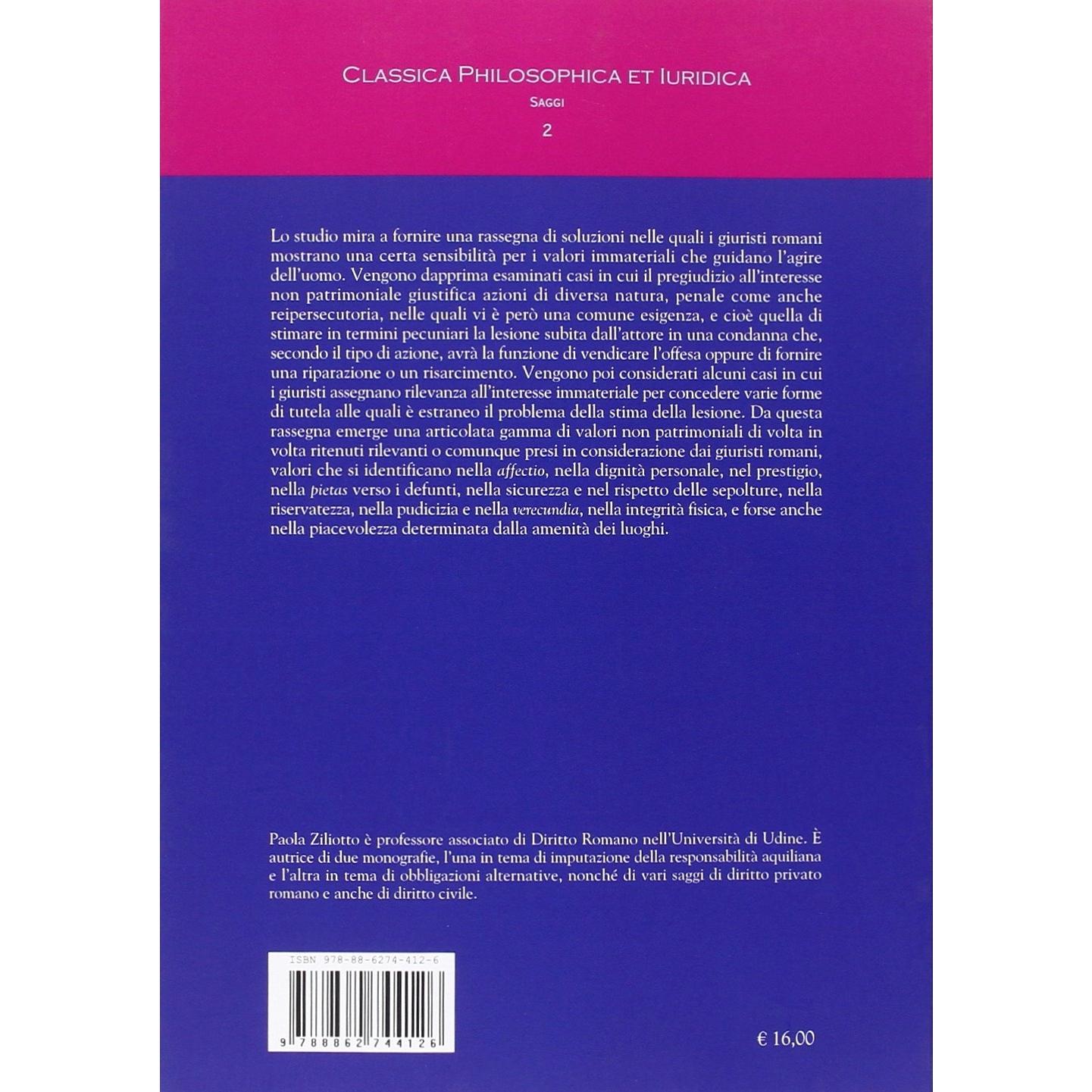 Sulla non patrimonialità del danno e dell'interesse nel diritto romano