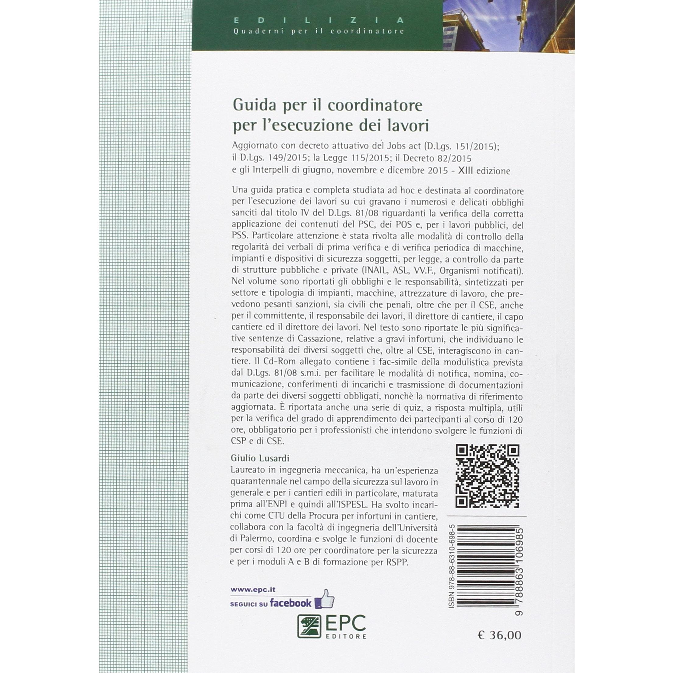 Guida per il coordinatore per l'esecuzione dei lavori. Manuale per i corsi di abilitazione per i coordinatori di 120 ore e di aggiornamento di 40 ore. Con CD-ROM