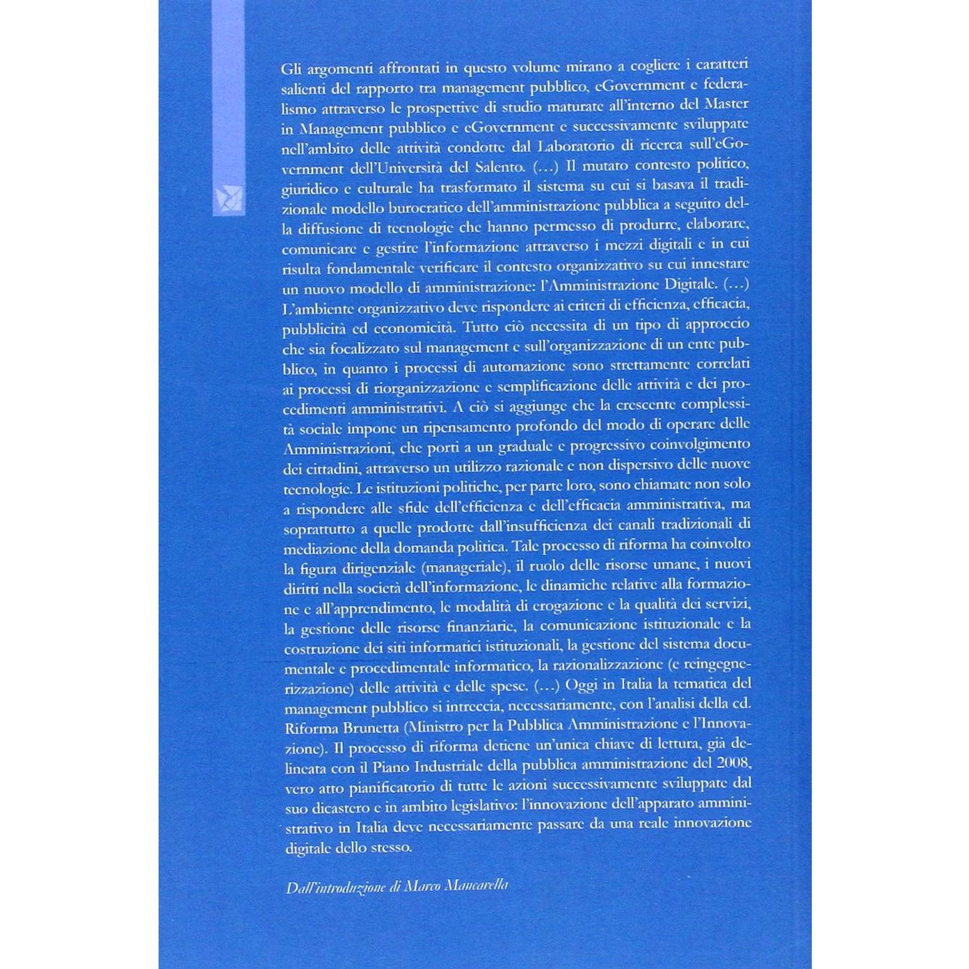 La pubblica amministrazione tra management, egovernment e federalismo
