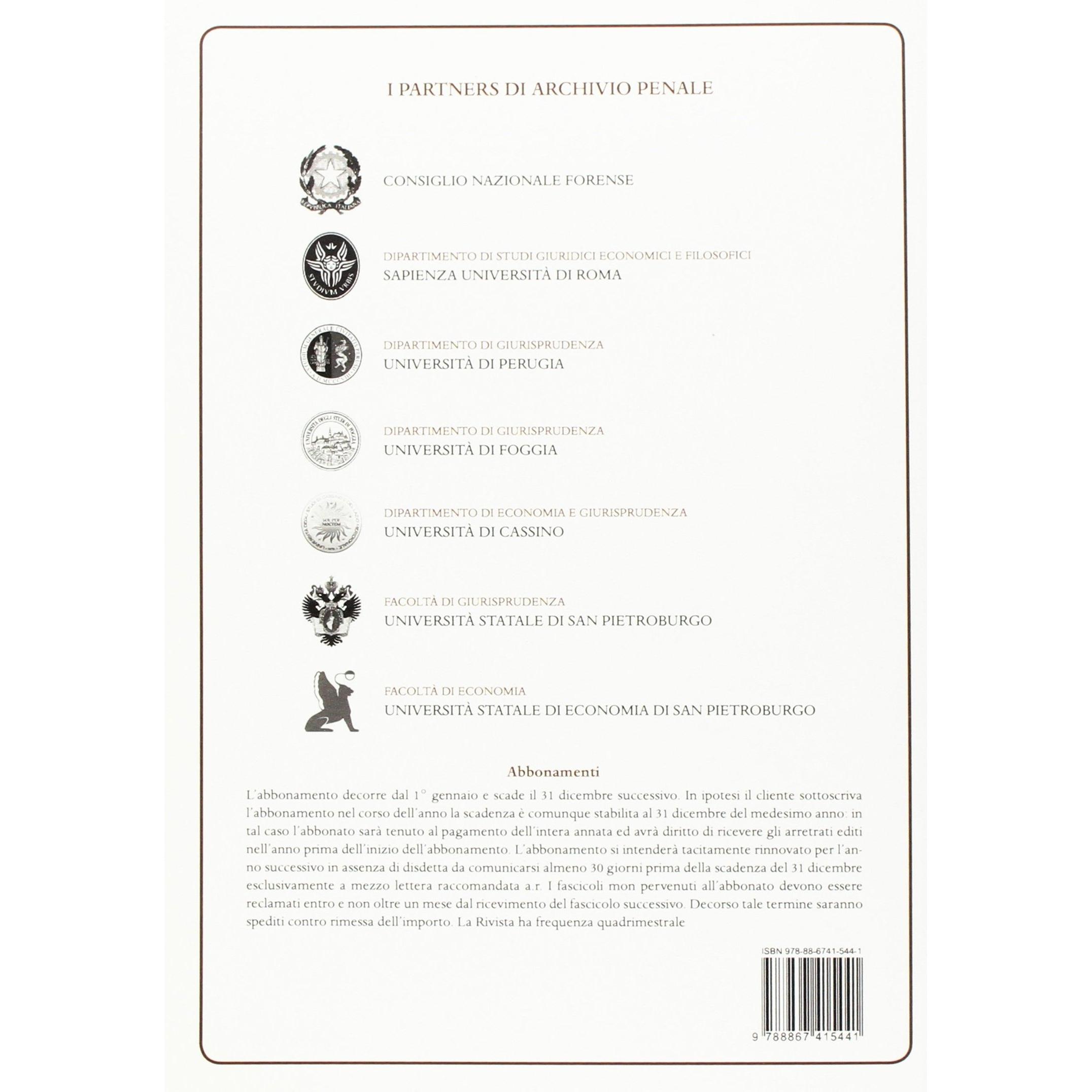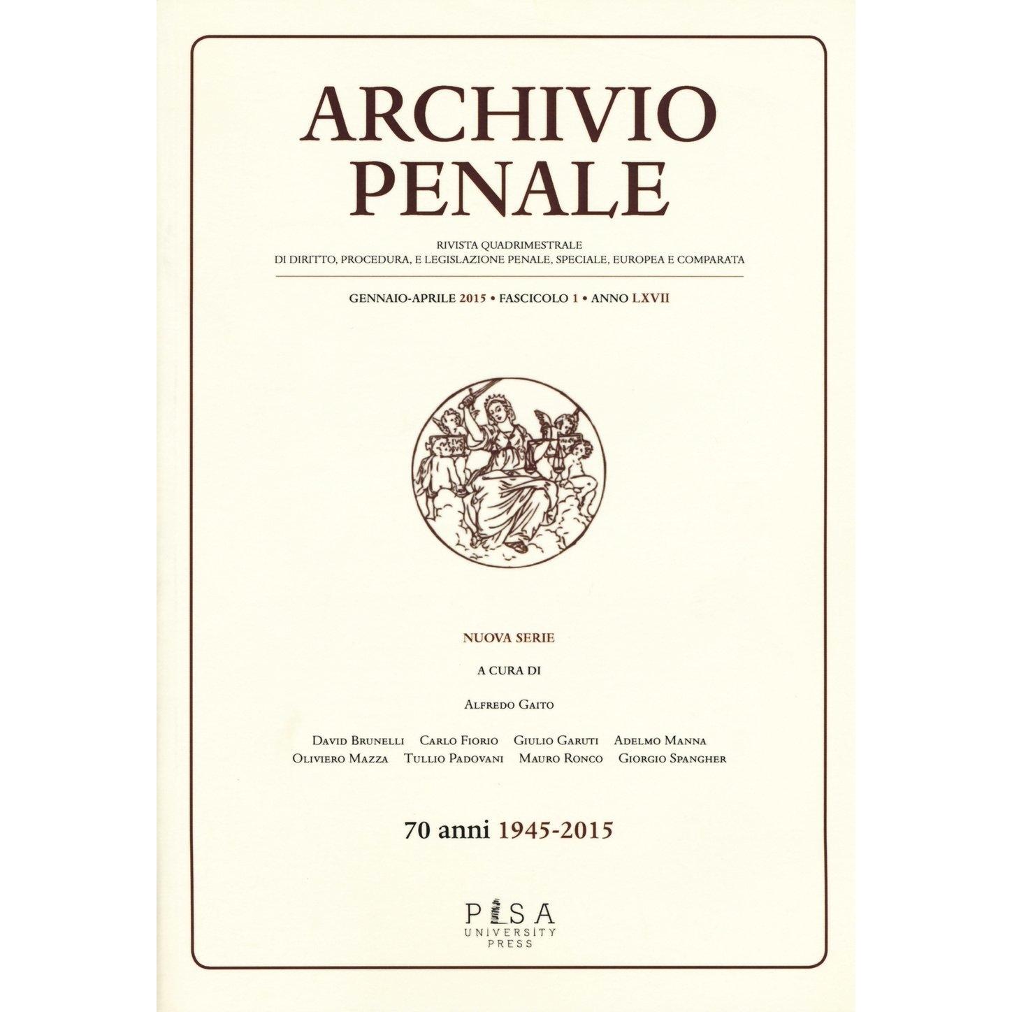 Archivio penale. Rivista quadrimestrale di diritto, procedura e legislazione penale, speciale, europea e comparata (2015) (Vol. 1)