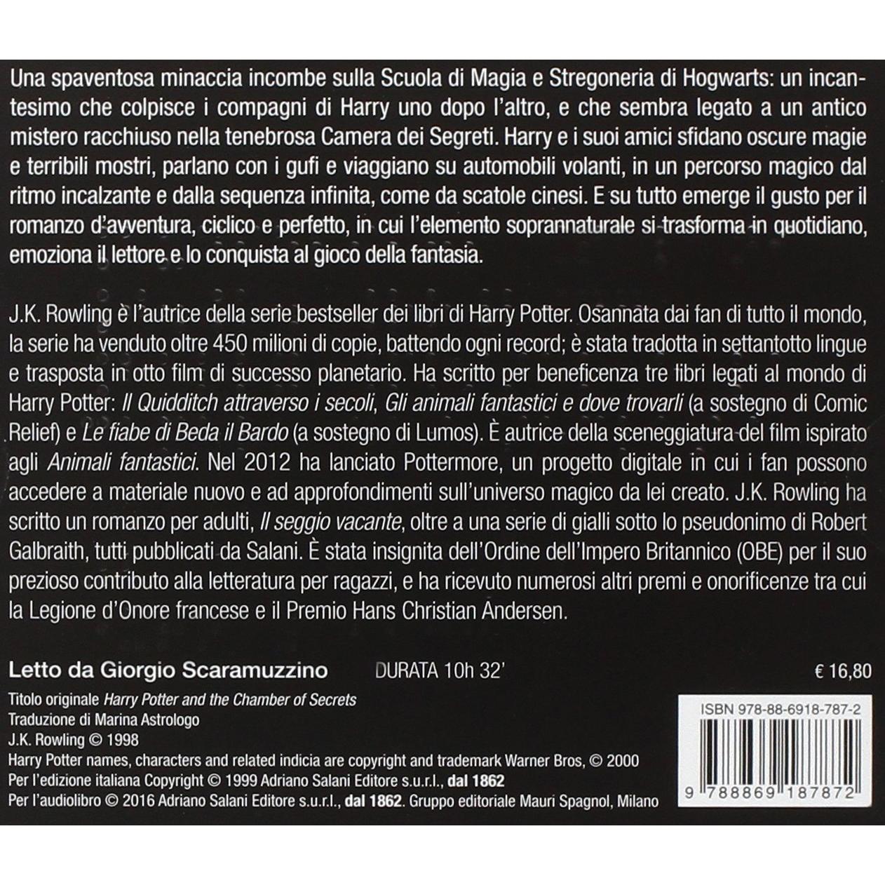 Con la voce calda e intensa di Giorgio Scaramuzzino, l’avventura di Harry Potter nella Camera dei Segreti prende vita su due CD MP3; l’audiolibro ...