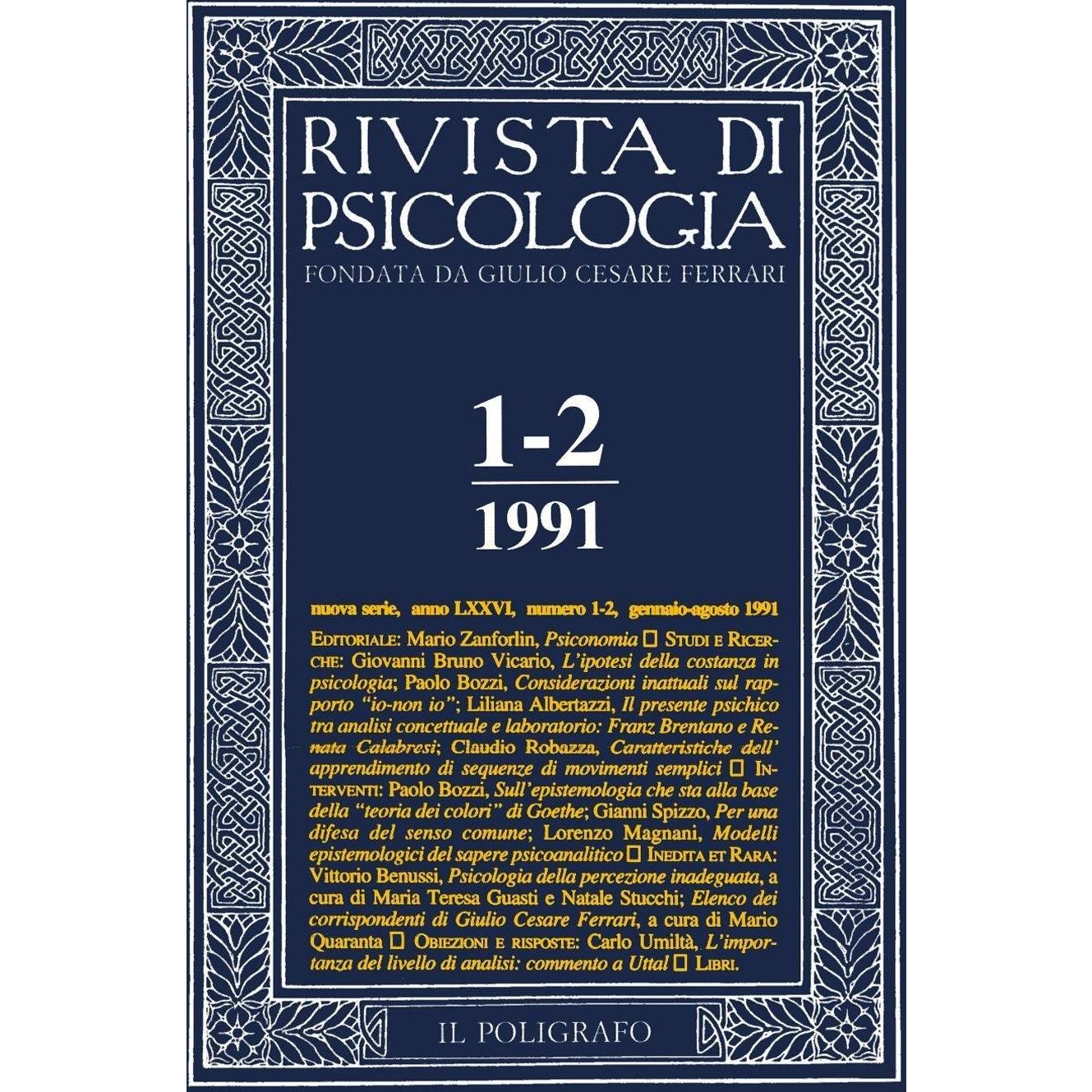 Rivista di psicologia (1991) vol. 1-2. Gennaio-agosto