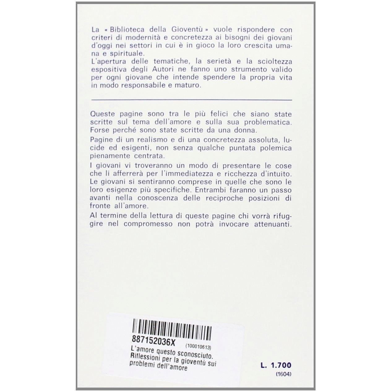 L'amore questo sconosciuto. Riflessioni per la gioventù sui problemi dell'amore