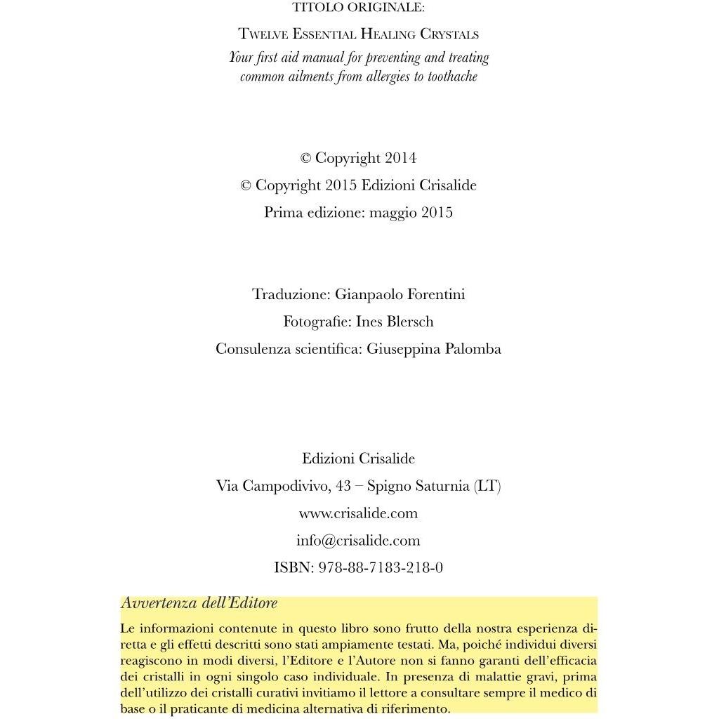 Il libro presenta i dodici cristalli fondamentali come strumenti di equilibrio energetico, spiegando usi quotidiani e rituali di pulizia per prevenire ...
