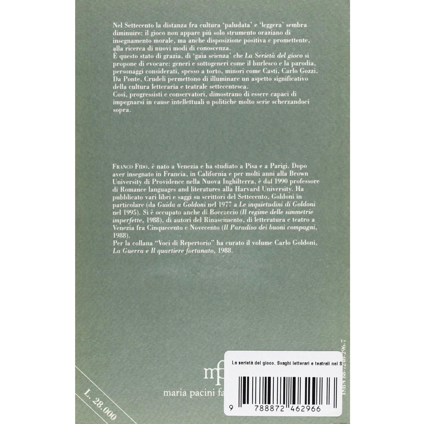 La serietà del gioco. Svaghi letterari e teatrali nel Settecento Franco Fido