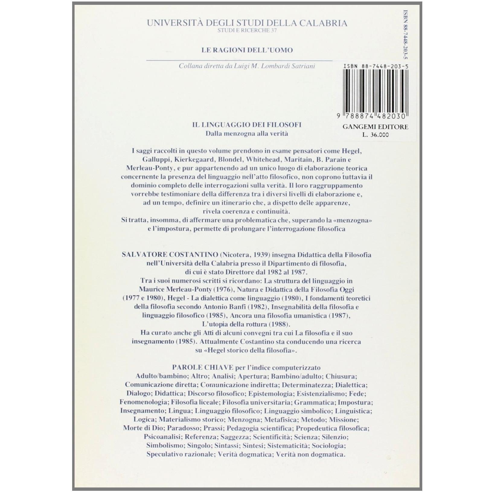 Il linguaggio dei filosofi. Dalla menzogna alla verità Salvatore Costantino