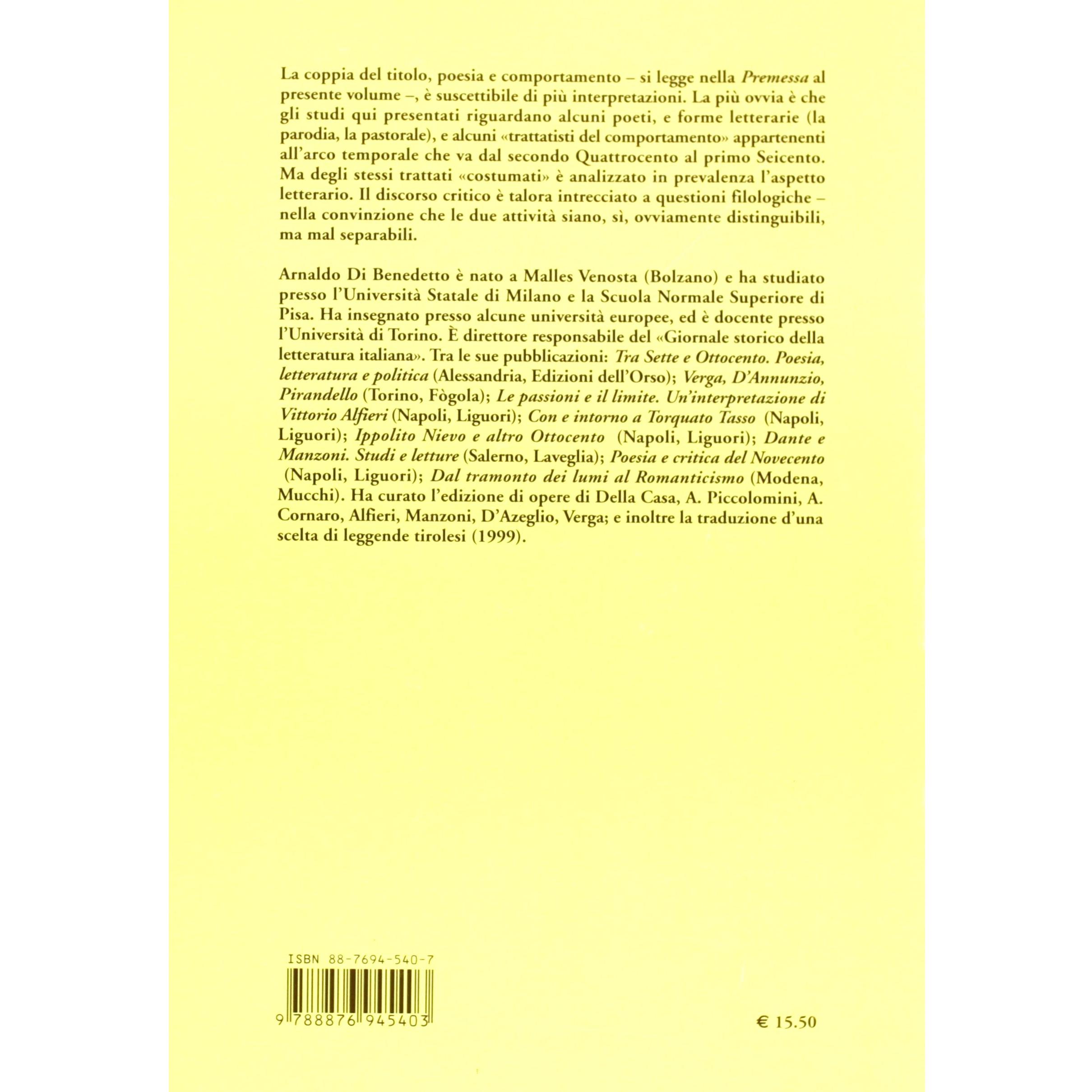 Poesia e comportamento. Da Lorenzo il Magnifico a Campanella Arnaldo Di Benedetto