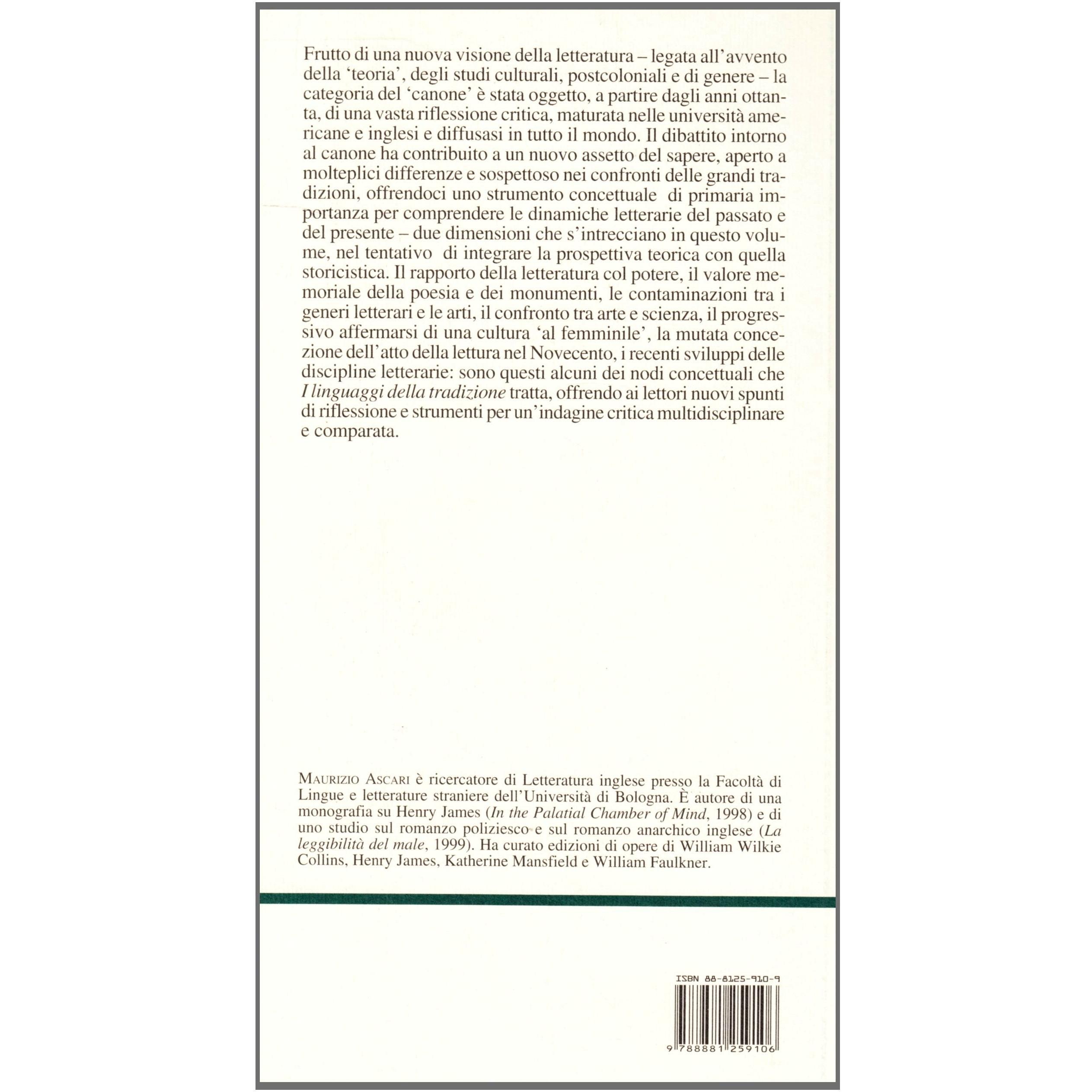 I linguaggi della tradizione: canone e anticanone nella cultura inglese Maurizio Ascari