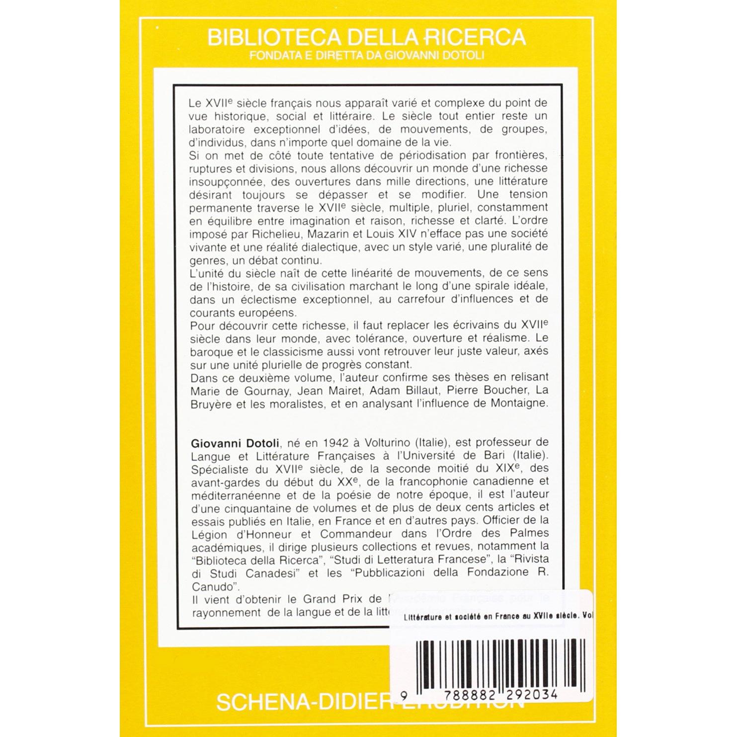 Littérature et société en France au XVIIe siècle. Vol. 2 Giovanni Dotoli