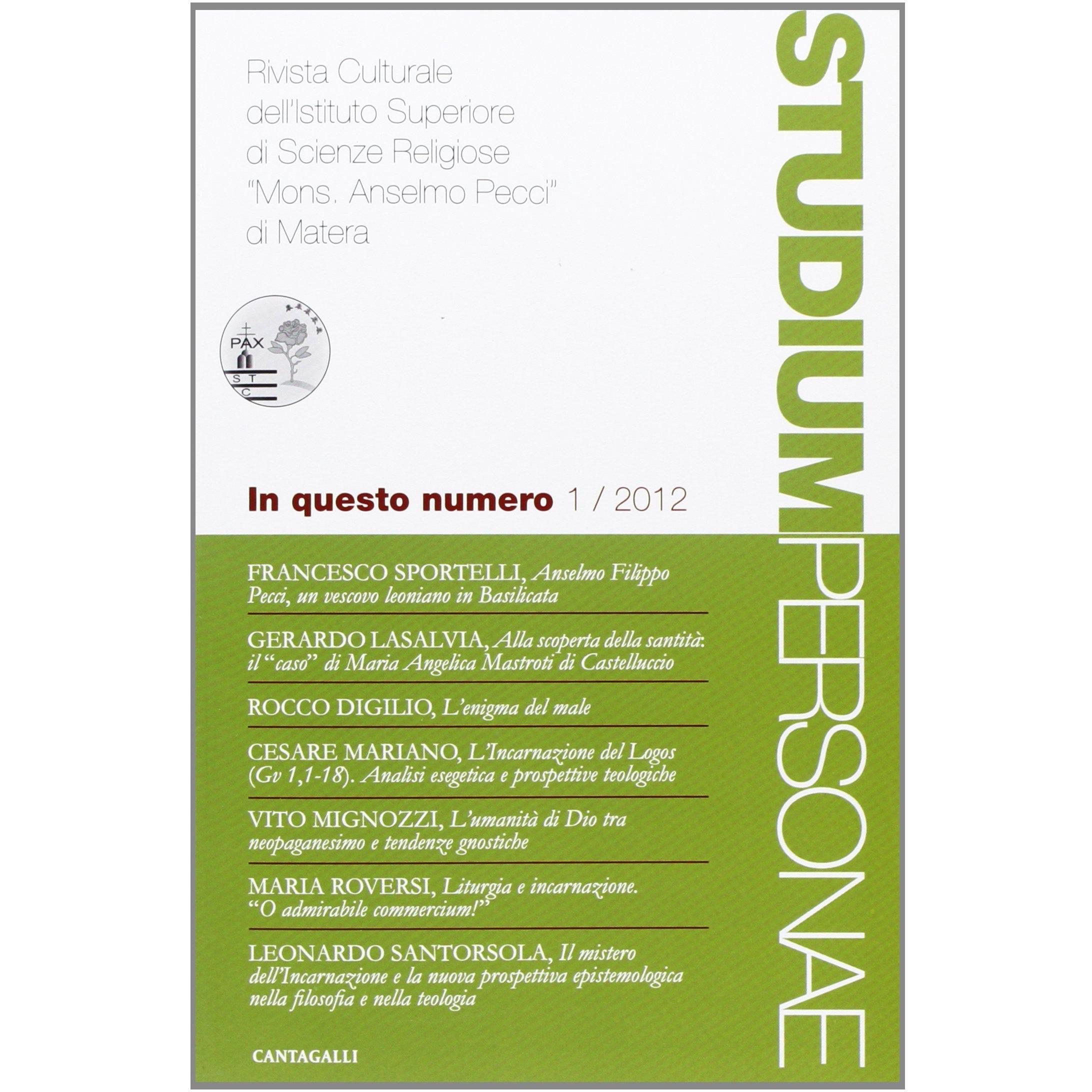 Studium personae. Rivista culturale dell'Istituto superiore di scienze religiose Mons. A. Pecci di Matera (2012) (Vol. 1)