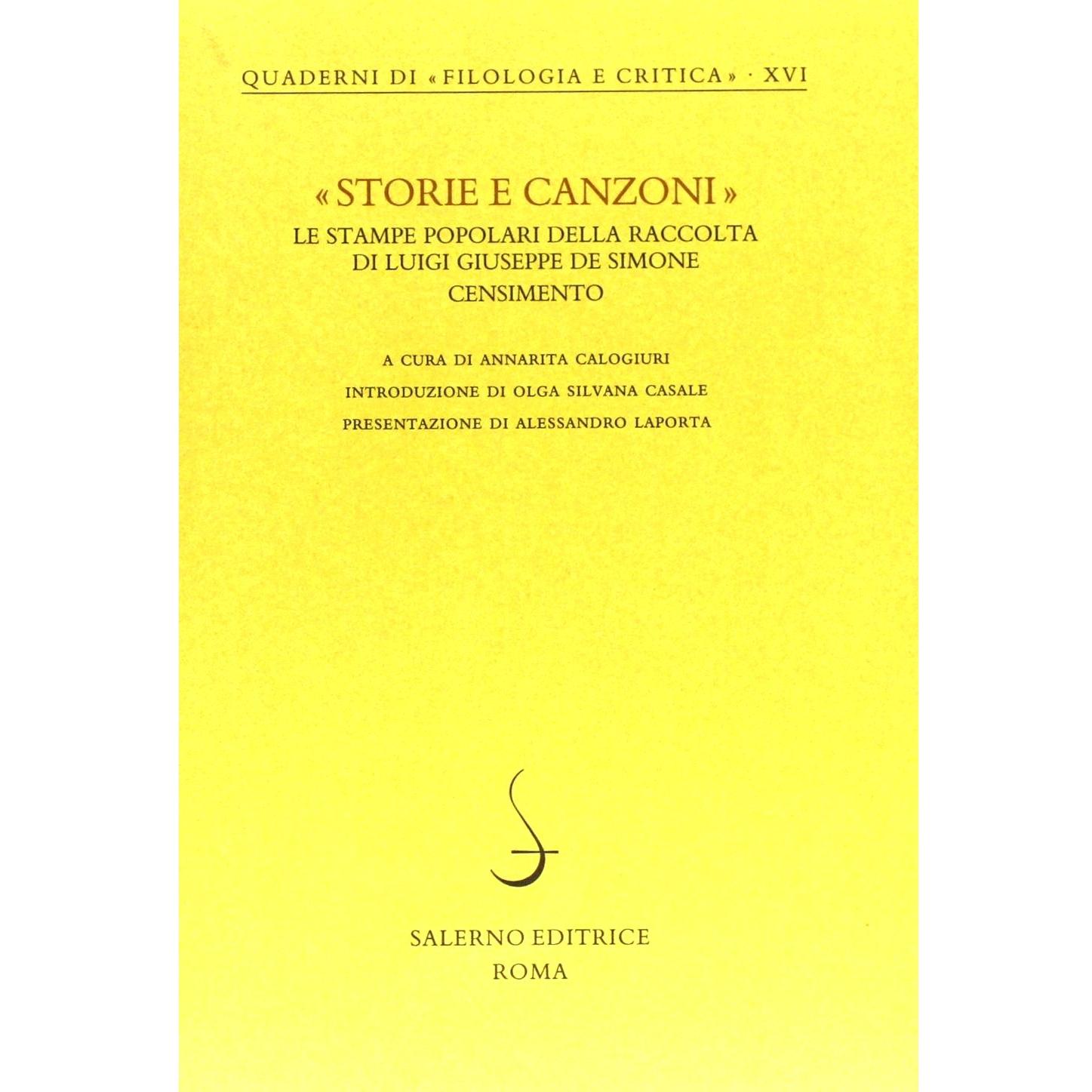 Storie e canzoni. Le stampe popolari della raccolta di Luigi Giuseppe De Simone. Censimento
