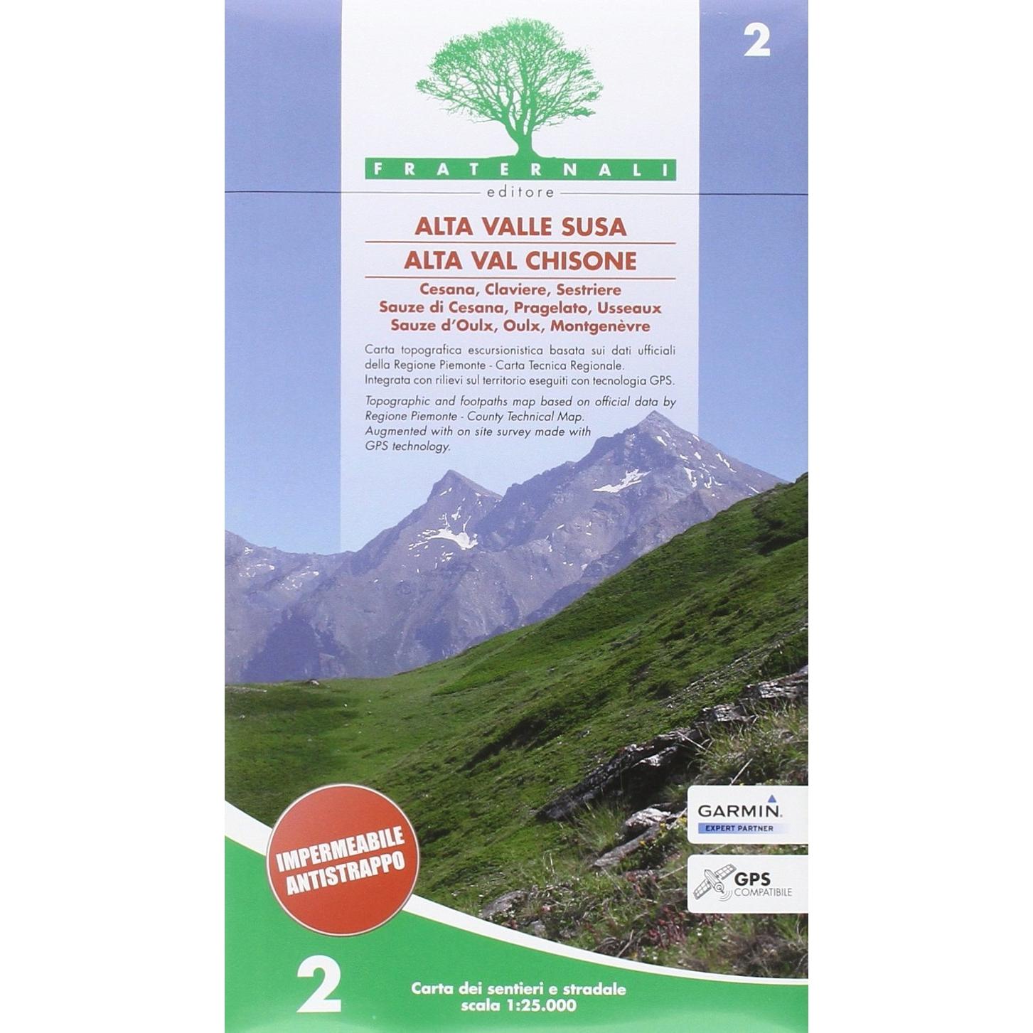 Carta n. 2. Alta valle Susa, alta val Chisone. Carta dei sentieri e stradale scala 1:25.000