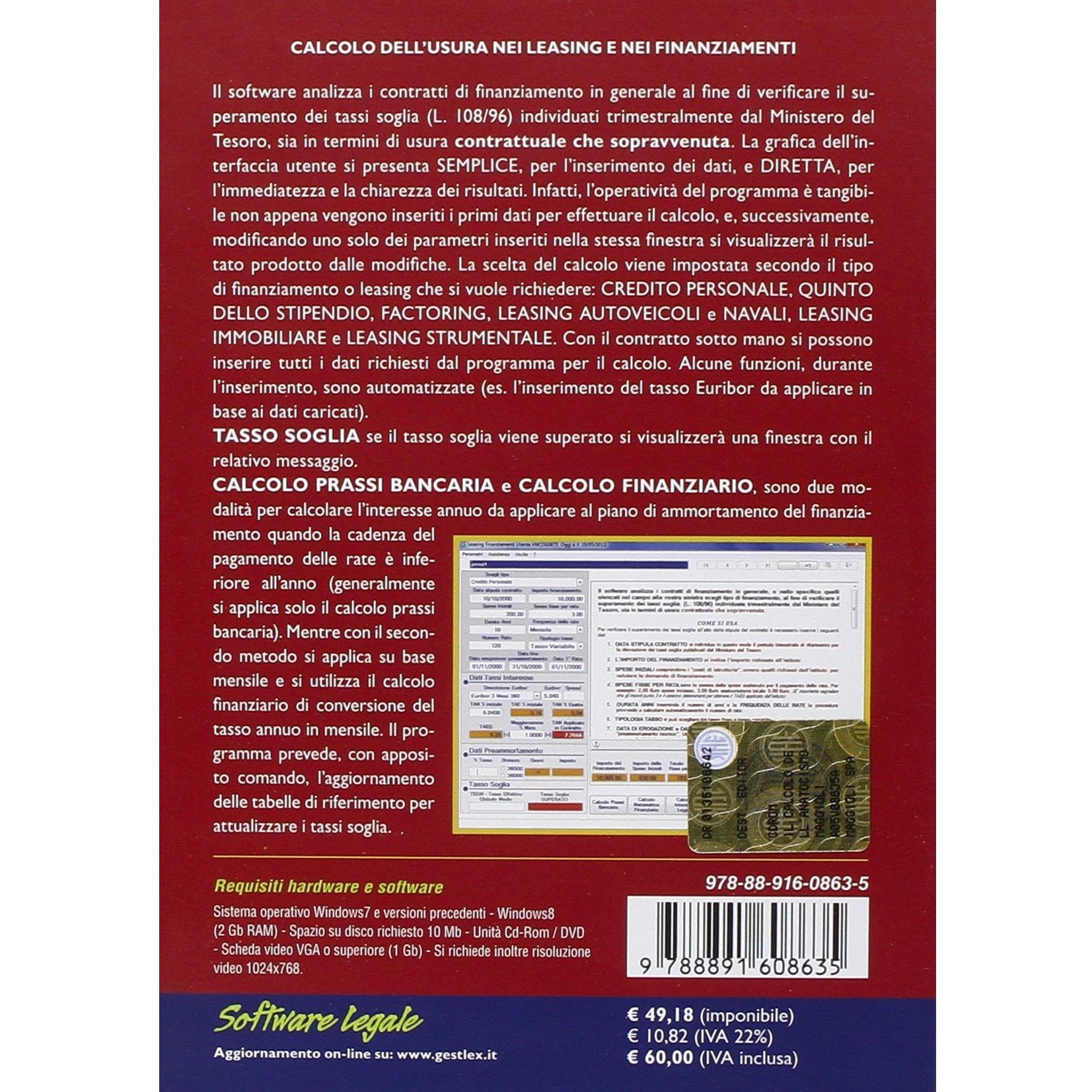 Calcolo dell'usura nei leasing e nei finanziamenti. Con software