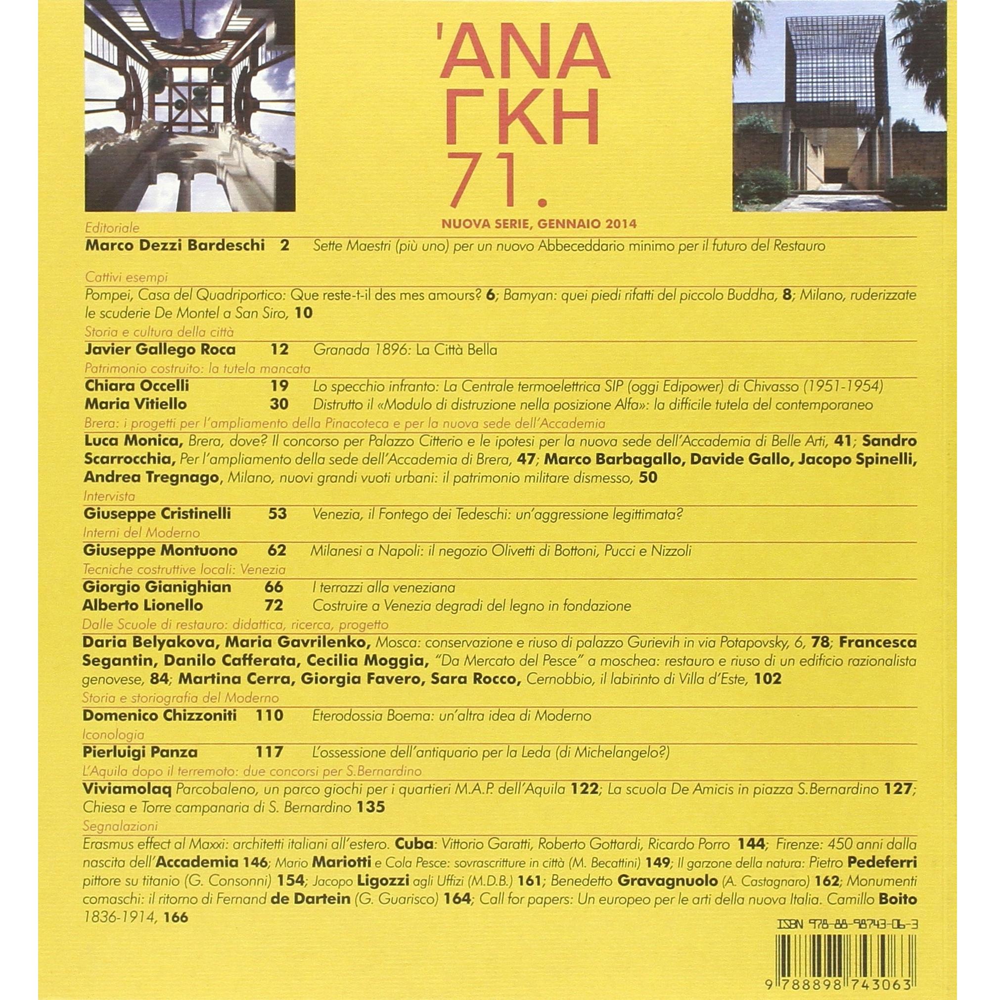 'Ananke. Quadrimestrale di cultura, storia e tecniche della conservazione per il progetto. Sette grandi maestri più uno. Brera: il concorso per ... e progettare a Venezia (2014) (Vol. 71)